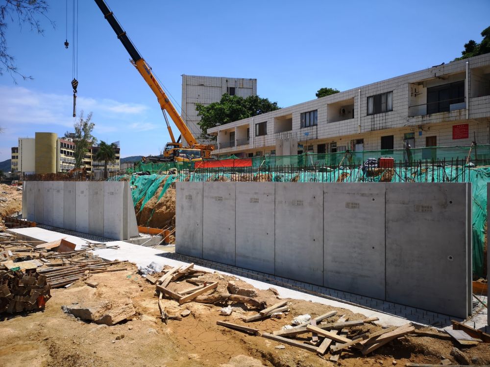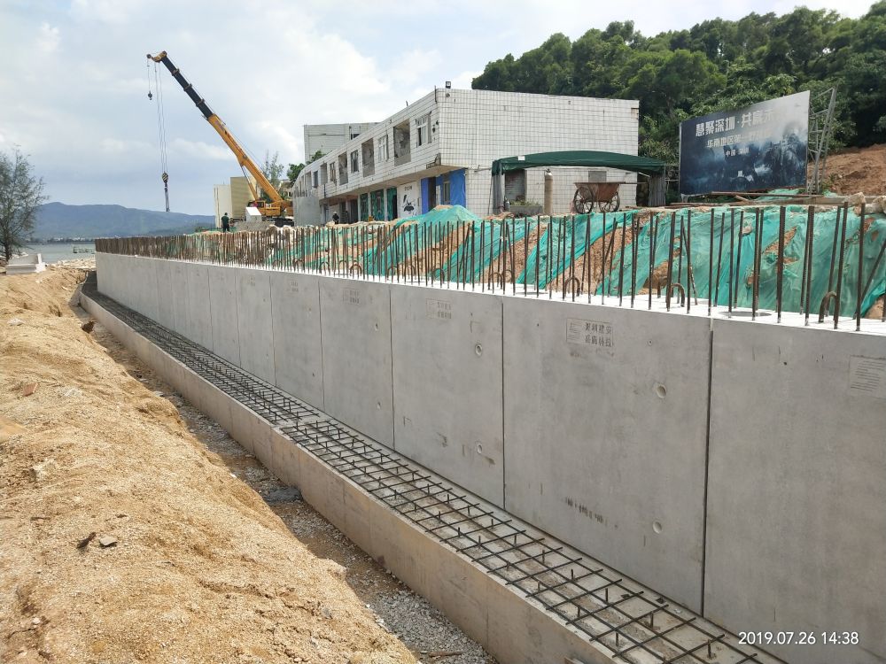 本項目為共青團深圳市委教育基地海堤災后修復工程項目,采用4種不同高度的預制擋土墻,預制構件應用于搶險救急項目,大大降低了施工作業難度,減少工期,加速防汛海堤的建設。